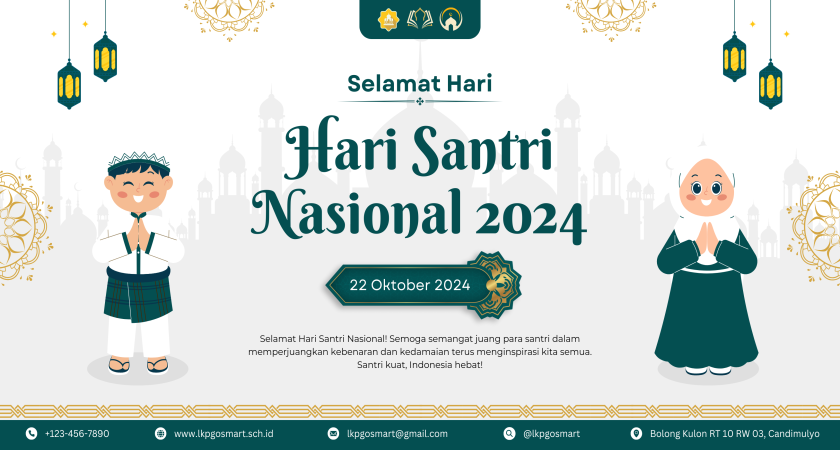 Hari Santri Nasional merupakan hari istimewa untuk menghargai jasa dan kontribusi santri bagi bangsa Indonesia. LKP Go Smart turut merayakan hari ini dengan menyampaikan ucapan selamat dan harapan agar para santri terus bersemangat dalam menuntut ilmu dan berkontribusi untuk kemajuan bangsa. Semoga semangat Hari Santri Nasional 2024 ini menjadi pemicu bagi kita semua untuk lebih menghargai perjuangan dan peran santri dalam kehidupan berbangsa dan bernegara.