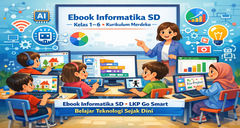Untuk membantu siswa memahami teknologi secara positif, LKP Go Smart menghadirkan Ebook Informatika SD Kelas 1–6 yang disusun berdasarkan Kurikulum Merdeka / Kurikulum Nasional.
